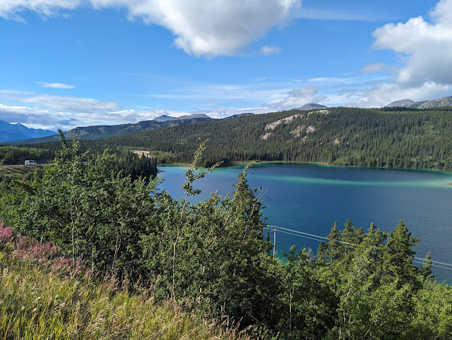 I arrived in Whitehorse, the capital of Yukon in pouring rain. At this point, it was only another 80 miles to Skagway but I had heard that the drive is not to be missed. So I got on my favorite cheap camping app, The Dyrt, and they listed The Real Canadian Superstore as similar to Walmart for free overnight stays. I spent the night there along with many others. Hey - real toilets, unlike the pit toilets I have used most frequently! Where's Waldo?